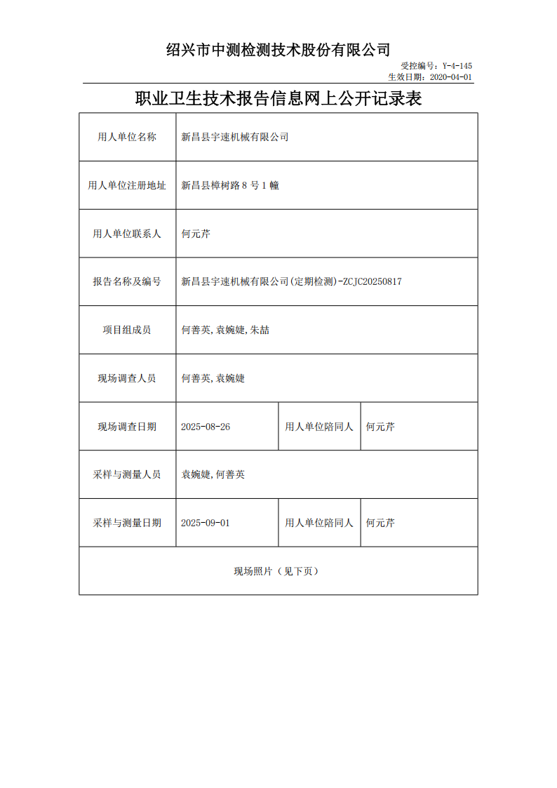 上一篇:ZCJC20250817_新昌县宇速机械有限公司职业卫生检测与评价报告网上公开表_新昌县宇速机械有限公司(定期检测)