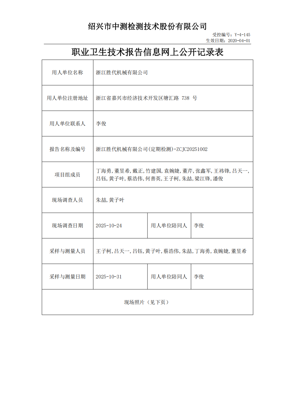 ZCJC20251002浙江胜代机械有限公司(定期检测)-职业卫生检测与评价报告网上公开表
