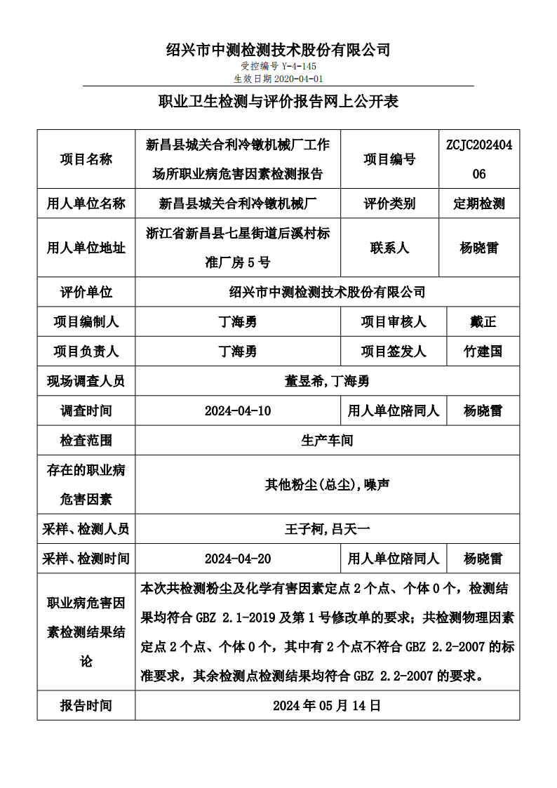 ZCJC20240406_新昌县城关合利冷镦机械厂-职业卫生检测与评价报告网上公开表