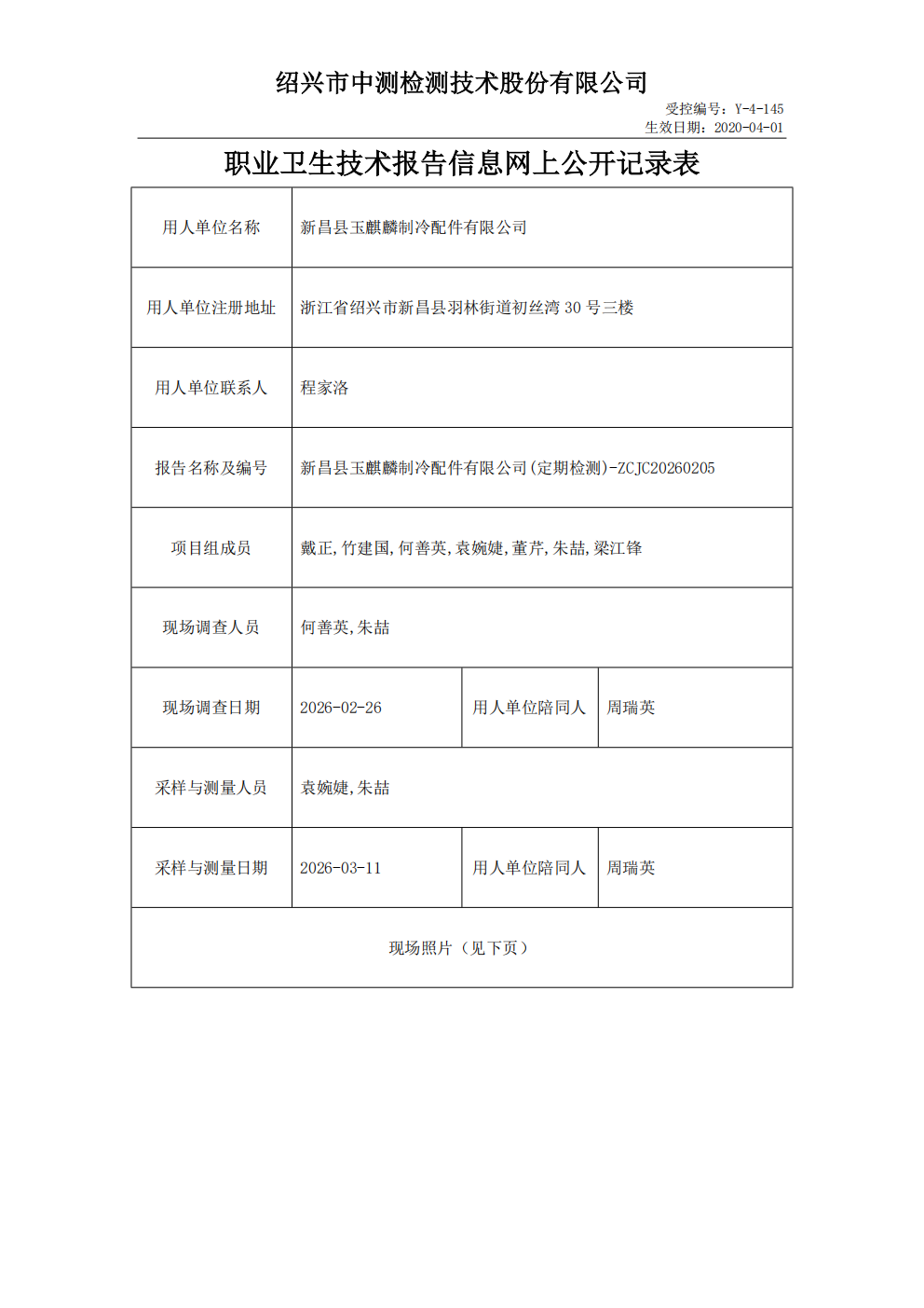 ZCJC20260205_新昌县玉麒麟制冷配件有限公司职业卫生检测与评价报告网上公开表